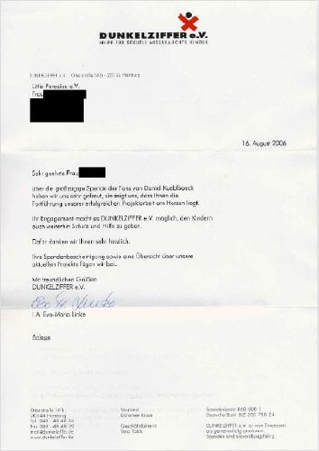 Ueber die Spende von EUR 1.000,- hat sich Dunkelziffer sehr gefreut.