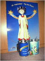 Alles einpacken was unbedingt mit soll: Spendendose, Flyer und Plakat - ach und natürlich das Wichtigste 100 Stck. wunderschöne "Engel-Button". So, ich bin fertig und es kann los gehen.