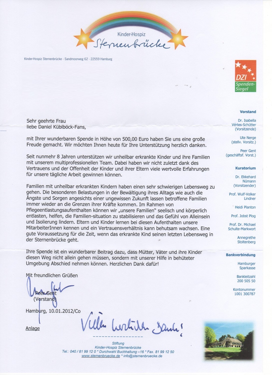 Jeweils 500 Euro haben wir an folgende Organisationen überwiesen: