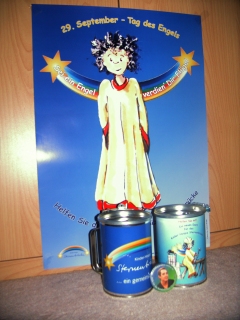 Nachdem ich ausgepackt hatte war das Staunen wirklich groß, mit so vollen Spendendosen hatte wohl keiner gerechnet und mir wurde sehr herzlich für unsere Aktion gedankt … natürlich habe ich auch ausführlich von dem Ablauf der Aktion berichtet und unseren tollen Button bewundern lassen, auch dieser kam sehr gut an … die Sternenbrücke hatte ja selber auch kleine Buttons dort mit dem niedlichen Engel drauf vom Prospekt - aber unser Button war schöner ;)…