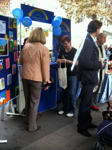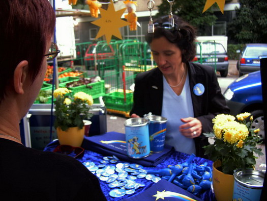 Alles einpacken was unbedingt mit soll: Spendendose, Flyer und Plakat - ach und natürlich das Wichtigste 100 Stck. wunderschöne "Engel-Button". So, ich bin fertig und es kann los gehen.